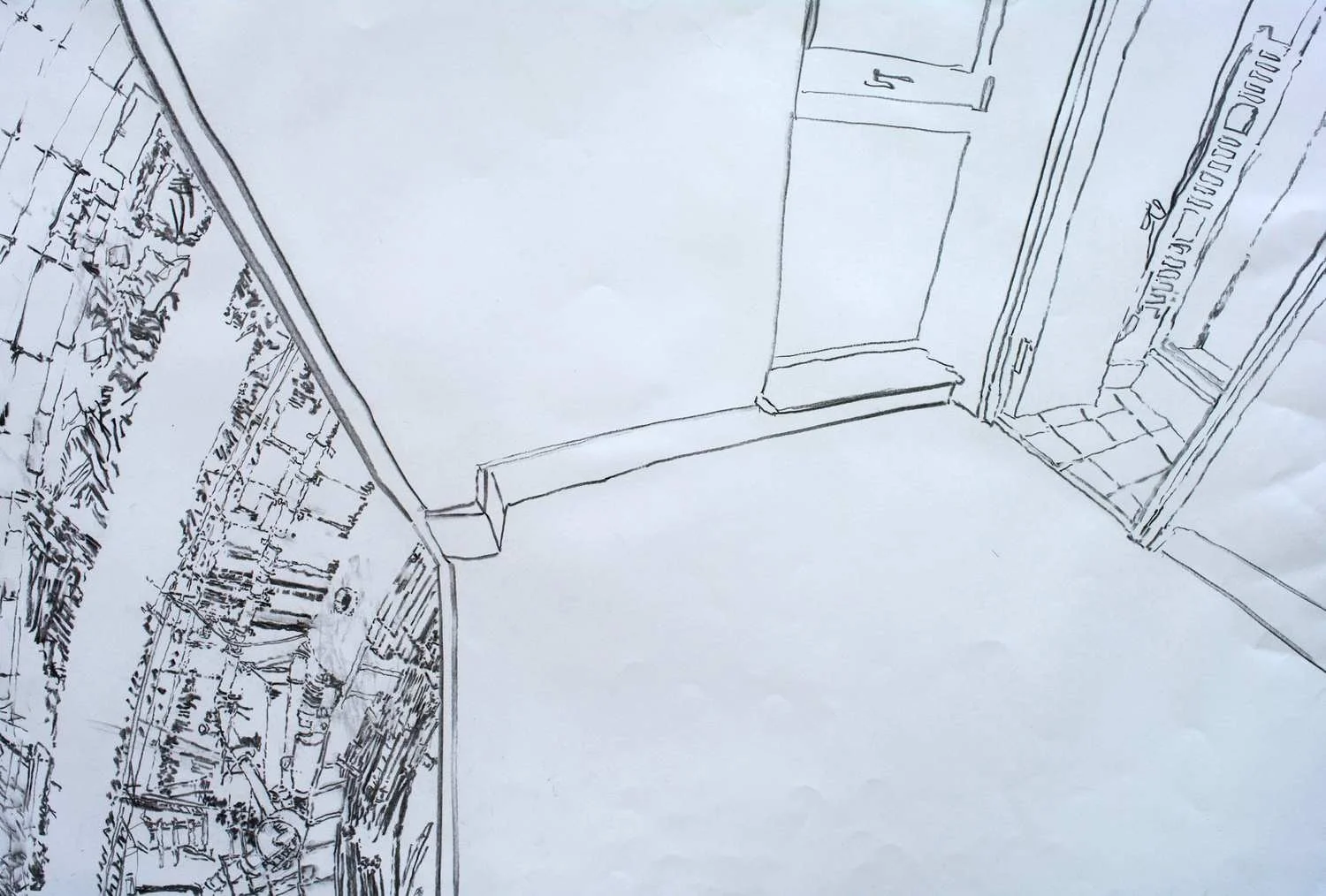 “It’s good you’ve already drawn the skirting boards, because I’ve got to take them all off now. And clean them. The customer wants a wooden floor. So we have to take the skirting up, otherwise they have to put another strip down.” Extract from conversation, drawing diary 2010