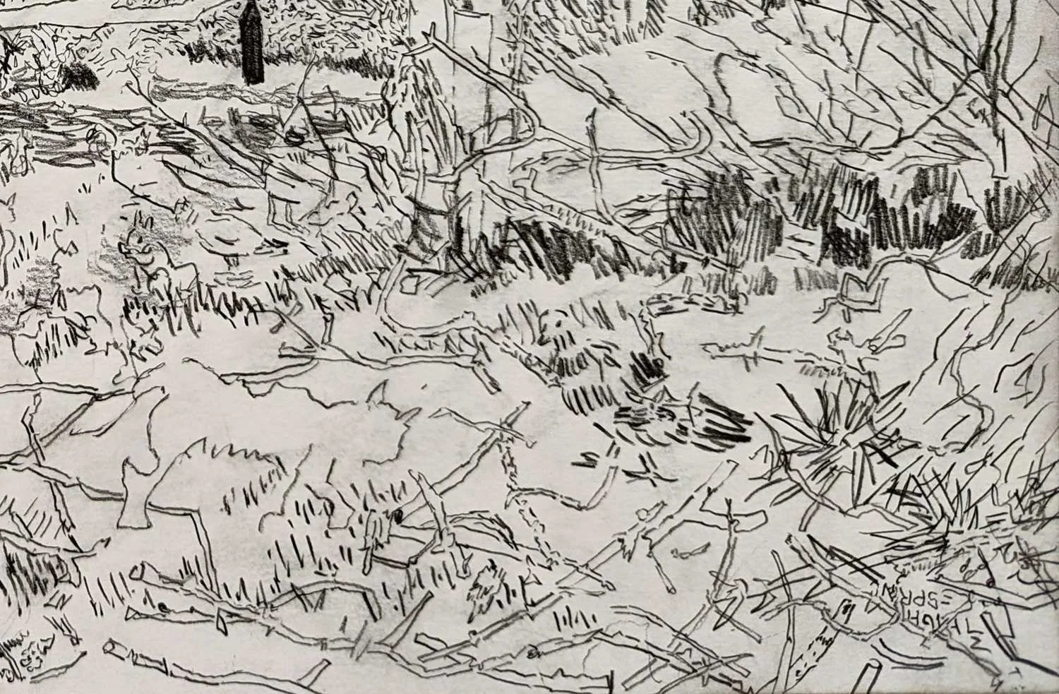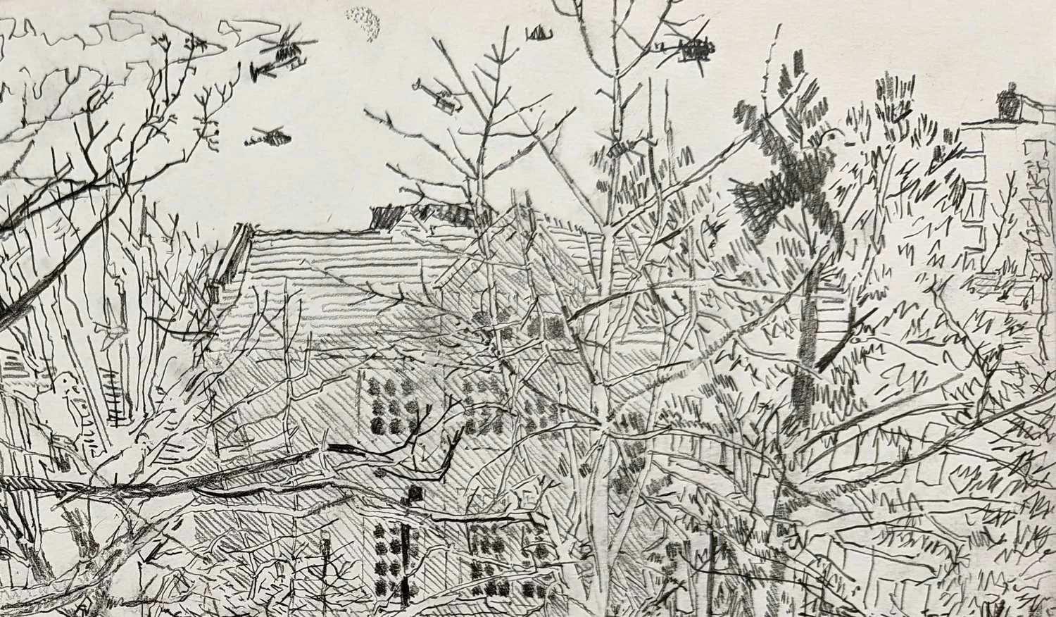 Above: DETAIL from: Sleeping Tree, 2022, graphite on paper, 29.7 x 42 cm.